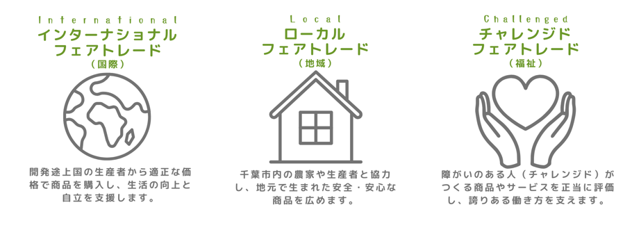 3つのフェアトレードを体感いただける千葉市初のフェアトレード専門カフェ&ショップです。